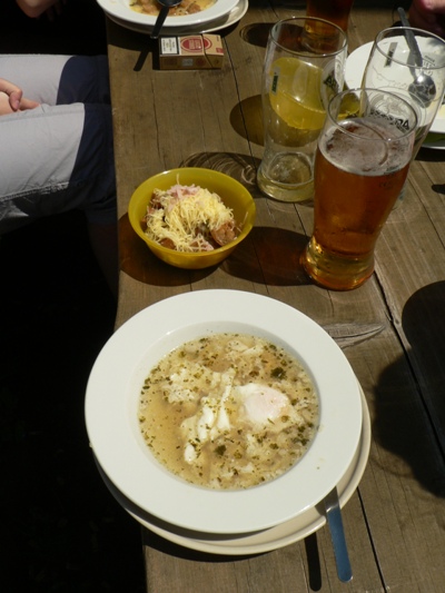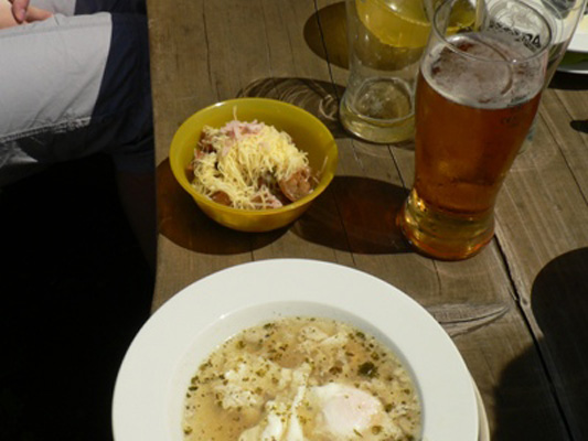 Nebo: Poobědváme a popijeme rovnou v Hoštejně v hospůdce a pak budeme pokračovat dále.
