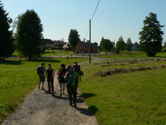 Buď: Z Hoštejna budeme pokračovat pěšky do vesnice s názvem Drozdovská pila. V místní restauraci se pokusím domluvit nějakou tu obědní polévku či tak něco.